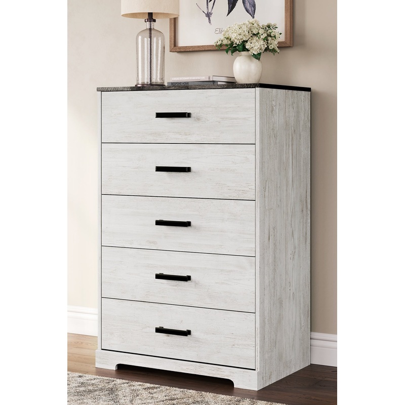 | Details | Made with engineered wood (MDF/particleboard/plywood) and decorative laminate for the right balance of affordability and durability, Whitewash replicated worn through paint, Top with rustic gray planked replicated oak grain with authentic touch, Pewter-tone pulls, 5 smooth-gliding drawers with vinyl-wrapped sides and back, Safety is a top priority, clothing storage units are designed to meet the most current standard for stability, ASTM F 2057 (ASTM International), Drawers extend out to accommodate maximum access to drawer interior while maintaining safety, Assembly required |