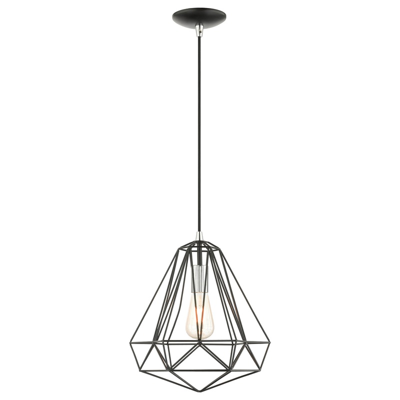 The Geometric collection showcases an angular frame set in a contemporary ambiance for a perfect accenting look. This single light pendant suspends simply, and it’s great solo over focus points or set in pairs or trios over long counter tops and islands. The design is a wonderful way to show off your modern style with ease. It is shown in a shiny black finish with polished chrome finish accents.
