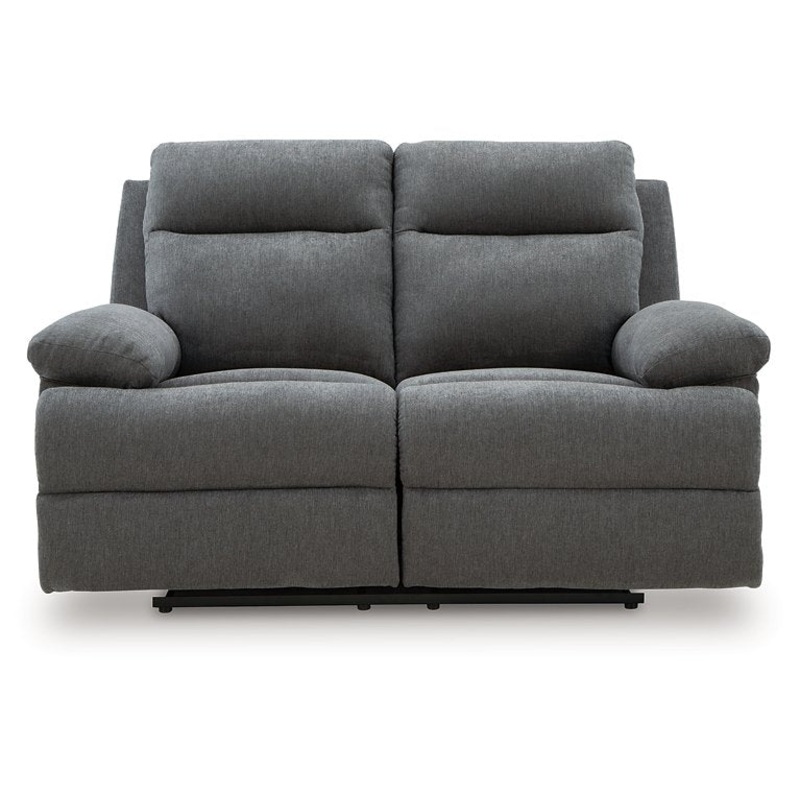 Fully upright or completely stretched out, this traditional-inspired reclining loveseat caters to the art of relaxation. Super soft charcoal-colored upholstery and sumptuous cushioningmade all the more indulgent with pillow top armscradles you in comfort f