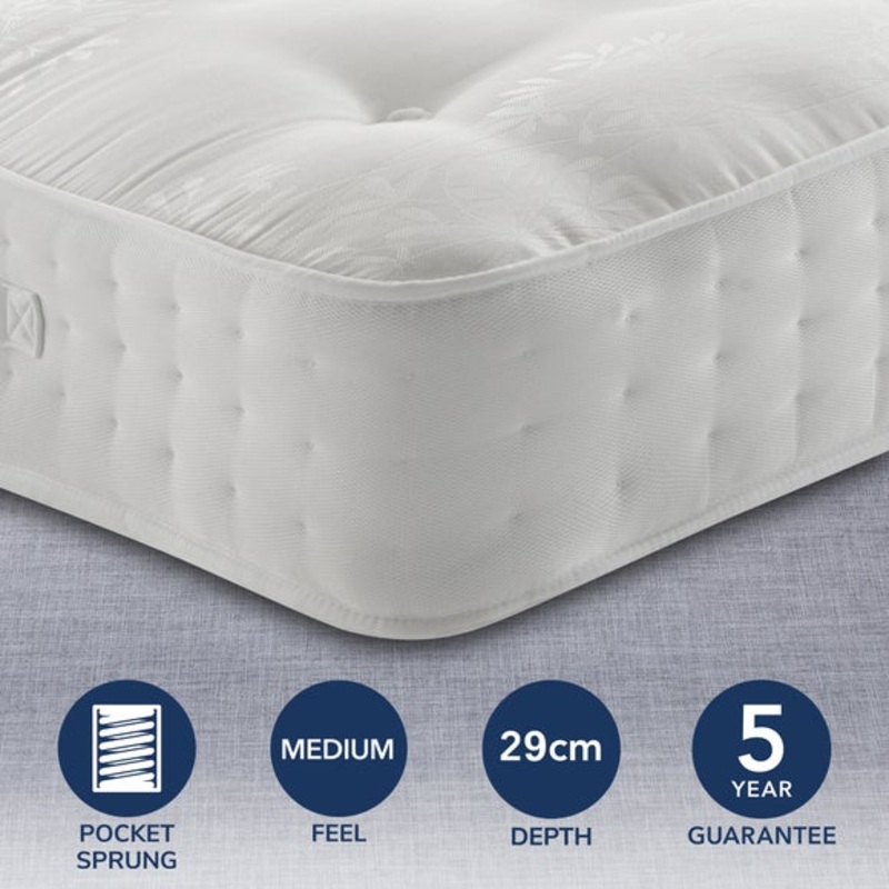With a sumptuous dual layer 2000 pocket spring system, this mattress provides zoning across the surface which is scientifically proven to provide better spinal alignment to aid aches and pains through the night whilst also ensuring tailored comfort and support where you need it most: around the lower back and hips. Each spring independently reacts to the unique weight and movement of your body, providing even weight distribution and maximum sleeping space.