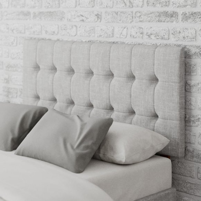 Cotton fabric headboardSquare buttoned headboard designContemporary Sinatra rangeHand upholstered with deep paddingSolid mahogany struts60cm headboard panel height40mm deep polyester paddingCompatible with standard size UK bed bases and divansManufactured
