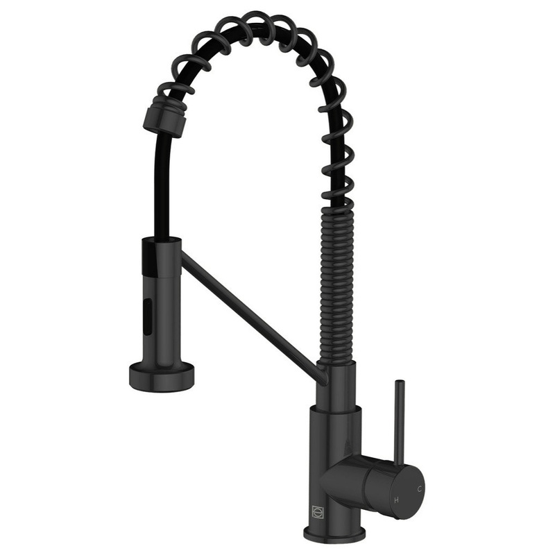 Introducing our kitchen faucet, showcasing a spring spout in an industrial style, accompanied by an ergonomic pull-down spray head. Simplifying water control with a single-handle lever, it offers effortless precision for daily kitchen tasks. Crafted from r