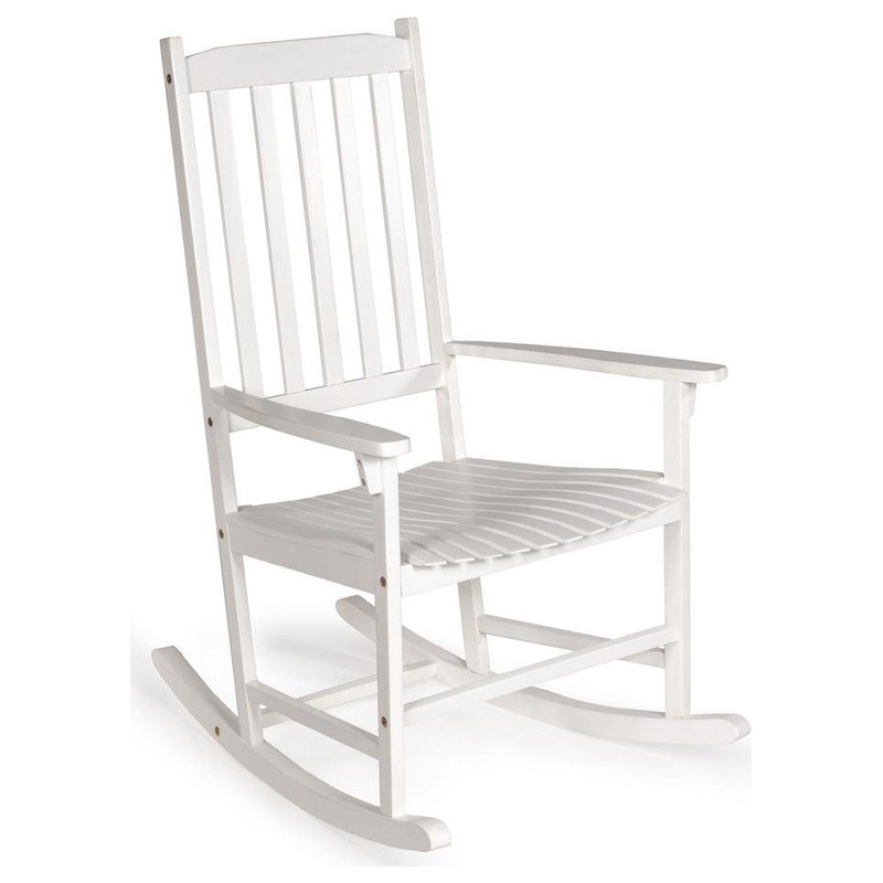 A classic porch rocker adds vintage charm to a formal home or coastal cottage. You'll love our roomy, high back version of this timeless classic. Made from solid hardwood, it's built for lazy afternoons on the porch or patio. Product ID29224527Manufactured
