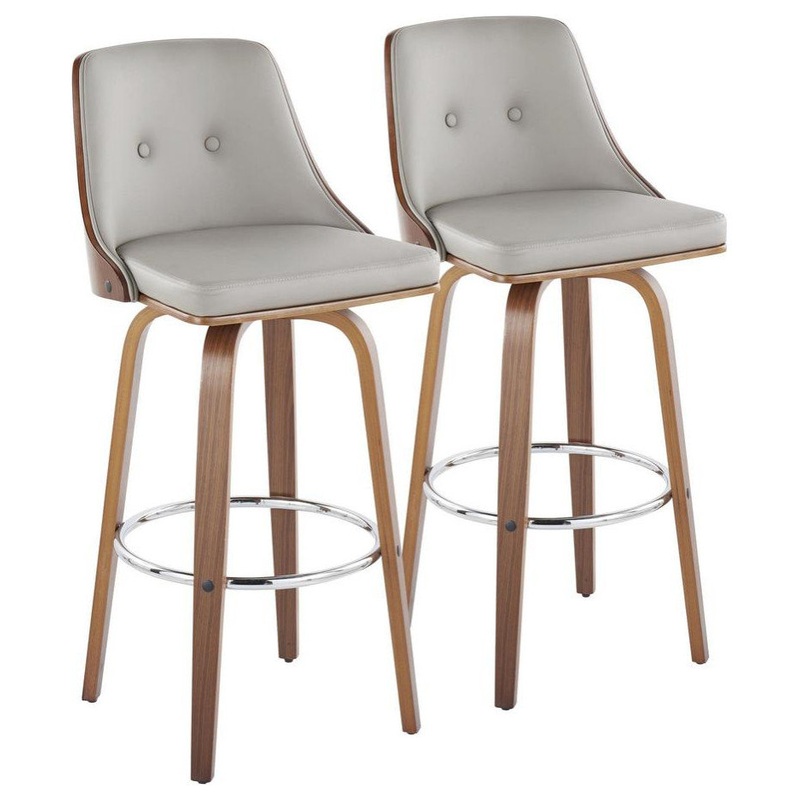 Inviting and refined with a hint of heritage design, the Gianna Fixed-Height Barstool by LumiSource will add a touch of class to any space. The Gianna features a contoured wooden back, bent wood tapered legs, and dual-tufted faux leather seat. Available in various colors.