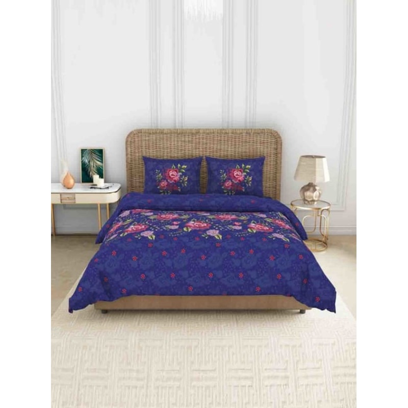 Spaces Adonia Floral Navy Blue 144 TC Cotton Double Bedding Set