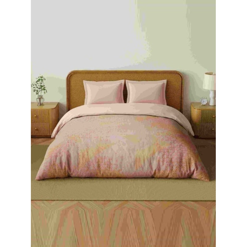 Modern geometry in SPACES Organic Cotton 180 TC Quilt in Mangano, light blush for subtle style. Organic cotton fabric, breathable and safe for skin with digital print 224cm x 270cm double quilt. Maintenance: machine wash 40C, tumble dry low, no bleach or i