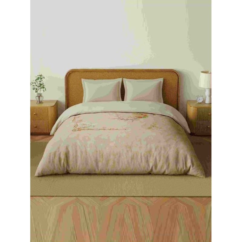 Pure comfort in SPACES Organic Cotton 180 TC Quilt in Whisper White, ornate design for serene vibes. Breathable organic cotton with digital print, safe for skin 224cm x 270cm double quilt in cream. Upkeep: wash at 40C, tumble dry low, avoid bleach and iron, no wring.