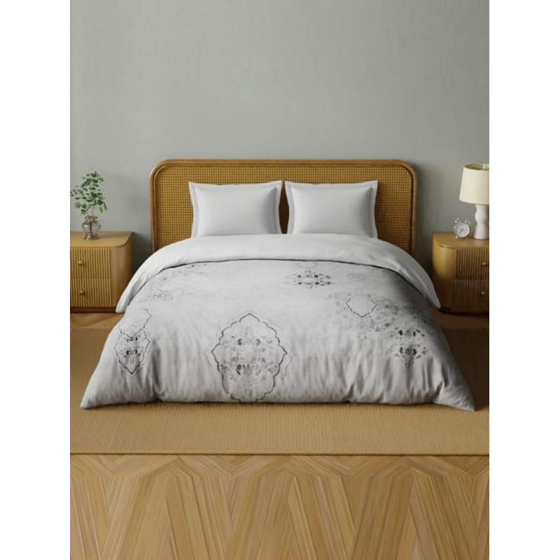 Lunar ornate with SPACES Organic Cotton 180 TC Quilt in Lunar Rock, light grey for subtle luxury. Breathable organic cotton safe for skin, digital print 224cm x 270cm double quilt. Maintain: machine wash 40C, tumble dry low, no bleach or iron, do not wring.