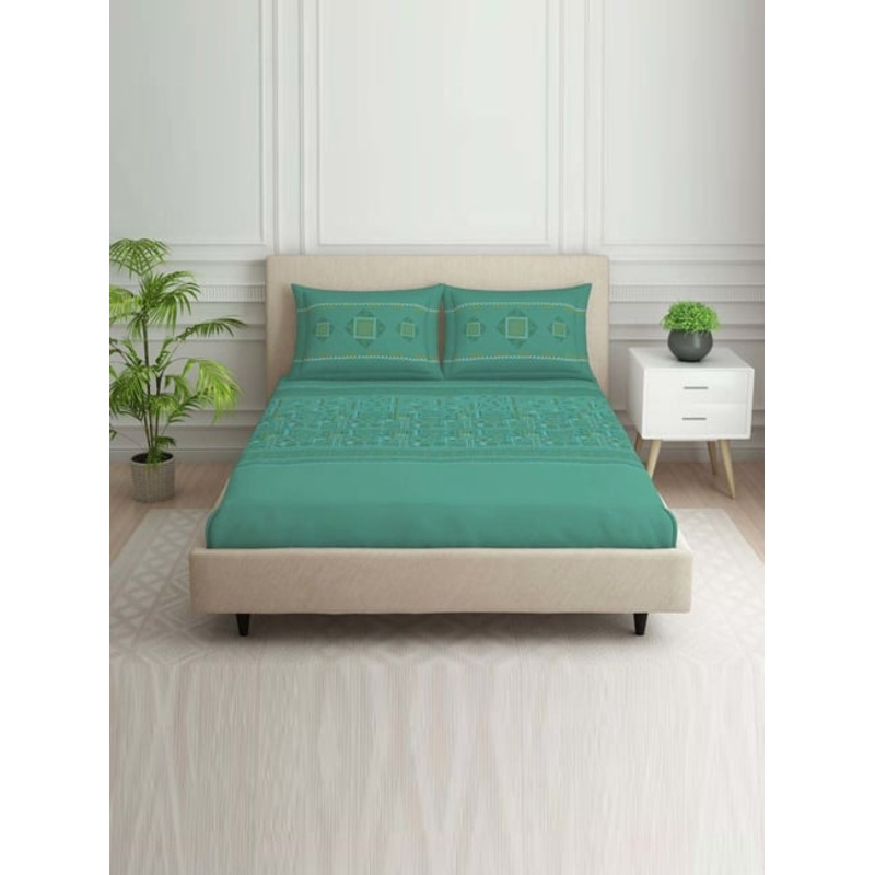 Be the first to review “Spaces Tribal Grid Light Green 100% Cotton 144 TC Double Bedsheet with 2 Pillow Covers”