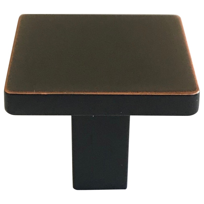Width: 1.18". Projection: 1". This Celeste Designs Square Knob is a modern cabinet knob for kitchen doors and drawers, made from solid zinc alloy with a finish of Oil Rubbed Bronze. Mounting screws are included for all cabinet pulls and cabinet hardware. T