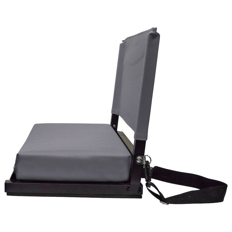 This Extra-Large size ultra-comfortable Stadium Chair has 3 thick padded seat that provides all day comfort on any surface for dedicated fans while watching your favorite events. Constructed with a quality steel frame and powder coated finish that makes these chairs durable for years of comfort. Portable and easy to carry, these chairs fold in half with a built in handle and adjustable shoulder strap that makes it easy to transport to and from each event. Bleacher hooks secure the seat to bench style seating along with solid rubber treads that provide additional grip to prevent sliding for a worry free seating experience.