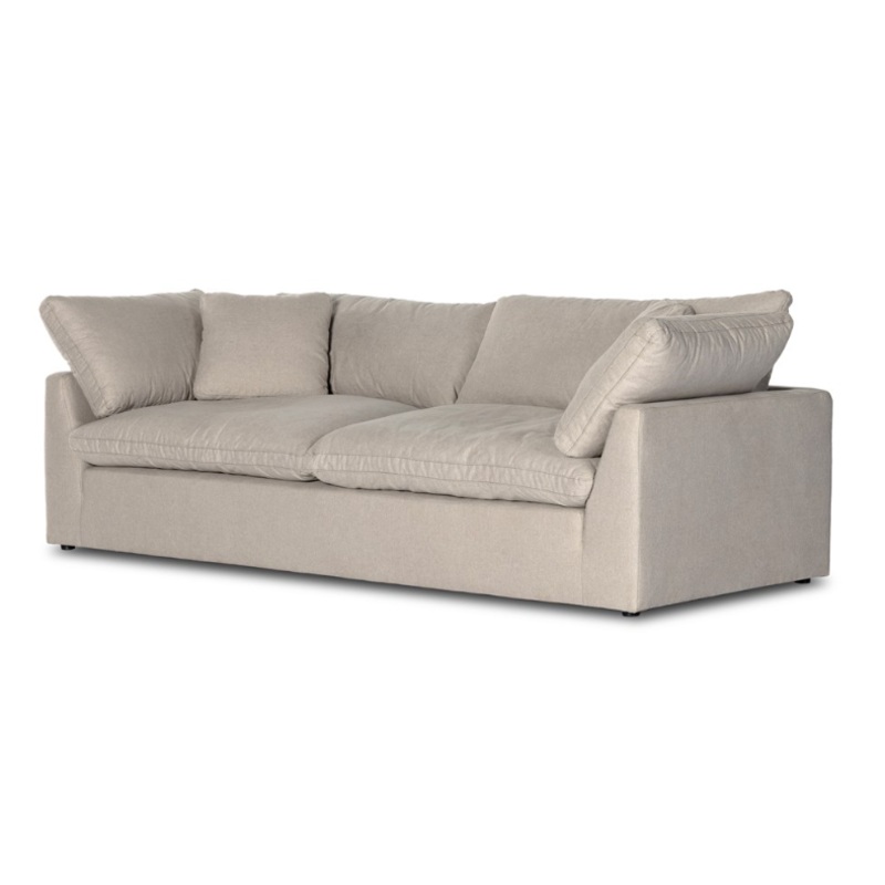 Equal parts casual and chic. Feather-blend cushioning and high-performance upholstery make this plush sofa an easy go-to in any sized space. Upholstered in a easy-care performance fabric with a flannel-like feel. Fluff cushions regularly to maintain appear