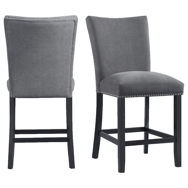 The Picket House Furnishings Stratton Counter Height Side Chair Set is going to look gorgeous in your dining room! This counter height set includes two side chairs, that are upholstered in a transitional, charcoal fabric. Chrome nail head trim outlines the edges of the chairs, instantly adding extra flair to this already stylish duo. The foam cushion seat and back will keep you plenty comfy through even the longest of dinners. The tall solid back adds a little extra drama, creating a look that you’ll never tire of! Add these chairs to your dining room today!