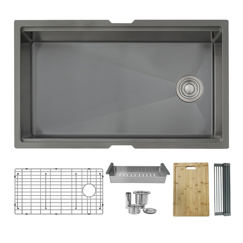 Workstation 33″ Handmade Graphite Black Single-Bowl Kitchen Sink Built in Accessories, by Stylish S-613WN Versa33