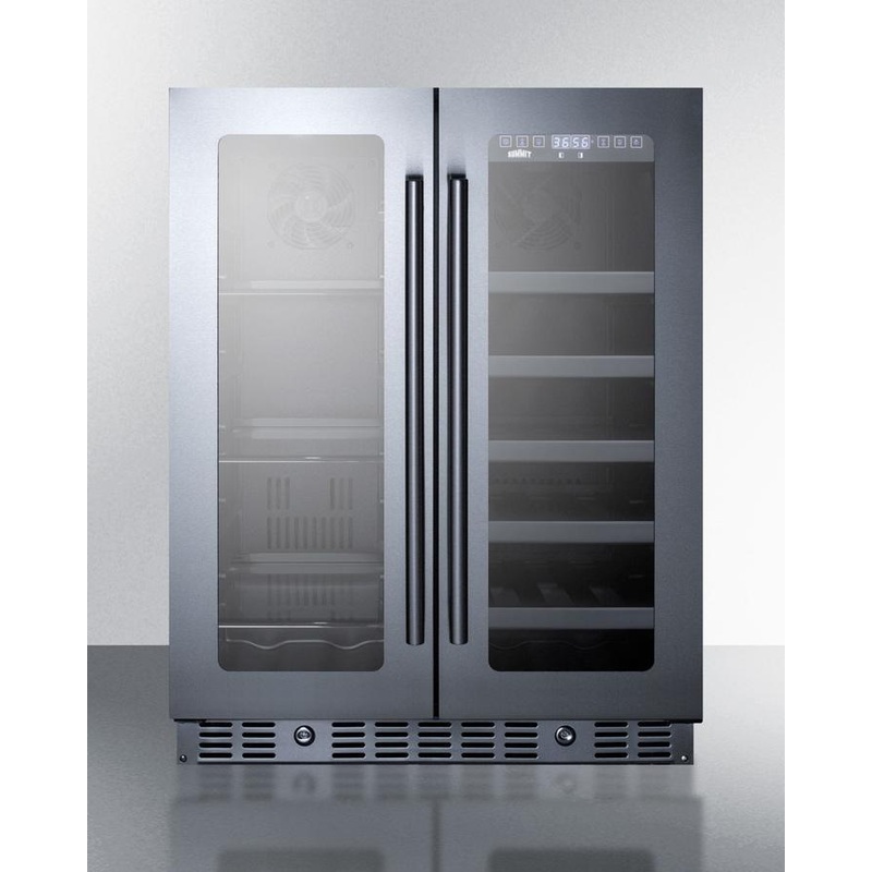 Summit offers a unique selection of built-in wine and beverage coolers for use in ADA compliant settings, with user-friendly features and luxury design. Sized with a convenient 24″ footprint, the ALFD24WBVCSS is 32″ high, allowing it to fit under lower ADA compliant counters. Adjustable leveling legs let you raise the height up to 33.5″ for added versatility. The front-breathing system allows built-in installation, while the fully finished cabinet also allows freestanding use. This model has a French door swing, with two double pane tempered glass doors in a seamless stainless steel trim. Each door includes a front lock and pro style handle in brushed stainless steel. For added luxury, the ALFD24WBVCSS features a fully wrapped cabinet in 304 grade stainless steel. The ALFD24WBVCSS features two distinct temperature zones to best store beverages and wine at their proper temperatures. The digital temperature controls make it easy to manage the temperature of each compartment, with a readout switchable from Fahrenheit to Celsius at the touch of a button. The left side includes adjustable glass shelves for spill-proof beverage storage and features a 36 to 43 F temperature range. The right compartment includes adjustable wooden shelves in a jet black finish to store red or white wine between 41 and 72 F. LED lighting offers an attractive and energy efficient presentation. This unit is equipped with audible alarms that warn if the doors are opened for over one minute and if the temperature exceeds the recommended range. Sabbath mode allows you to disable certain electrical features during periods of observance. With its unique design and advanced features, the ALFD24WBVCSS offers versatile storage for any undercounter space. Additional ADA compliant choices are available in Summit’s line. Browse our website for more information.
