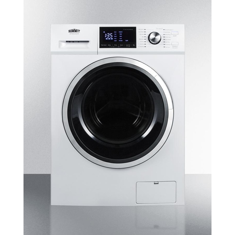 SUMMIT SPWD2202W is a 24" wide washer/dryer combo designed to maximize laundry capacity in an easy fit. This non-vented condensing (ductless) 115V washer/dryer comes in a classic white finish. The stainless steel drum offers a generous 2.7 cu.ft. capacity
