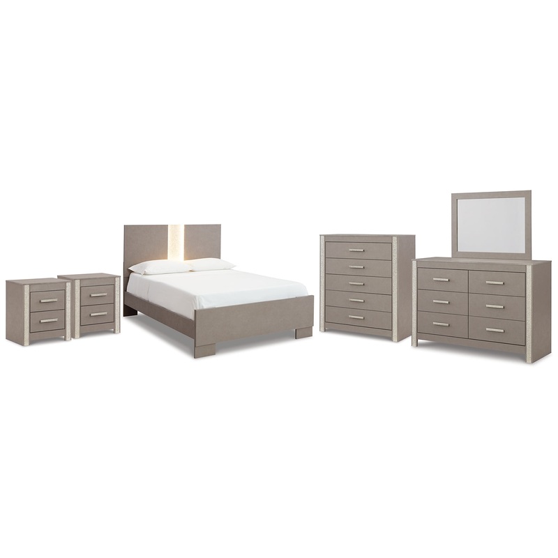 Surancha Queen Panel Bed, Dresser, Mirror, Chest and 2 Nightstands