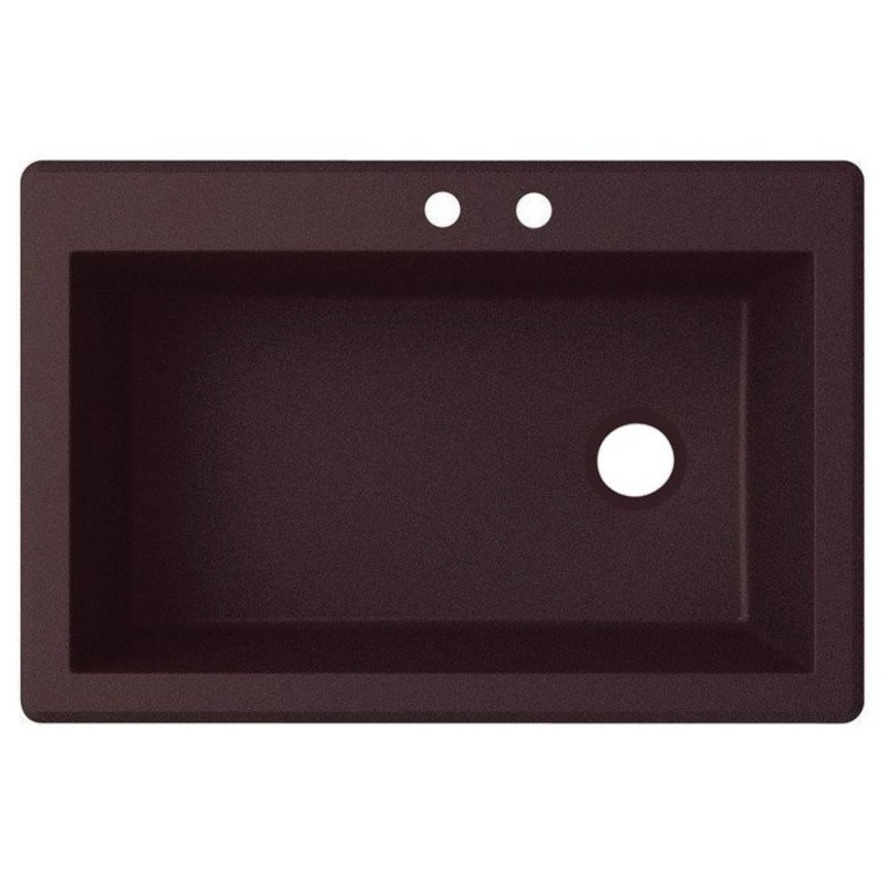 -Made with 80% actual quartz stone; only a diamond is harder -Pre-drilled with 2 faucet holes -Offers design flexibility, installs as a drop-in or undermount -Virtually indestructible, will not damage from kitchen use -Ideal for remodeling or new construct