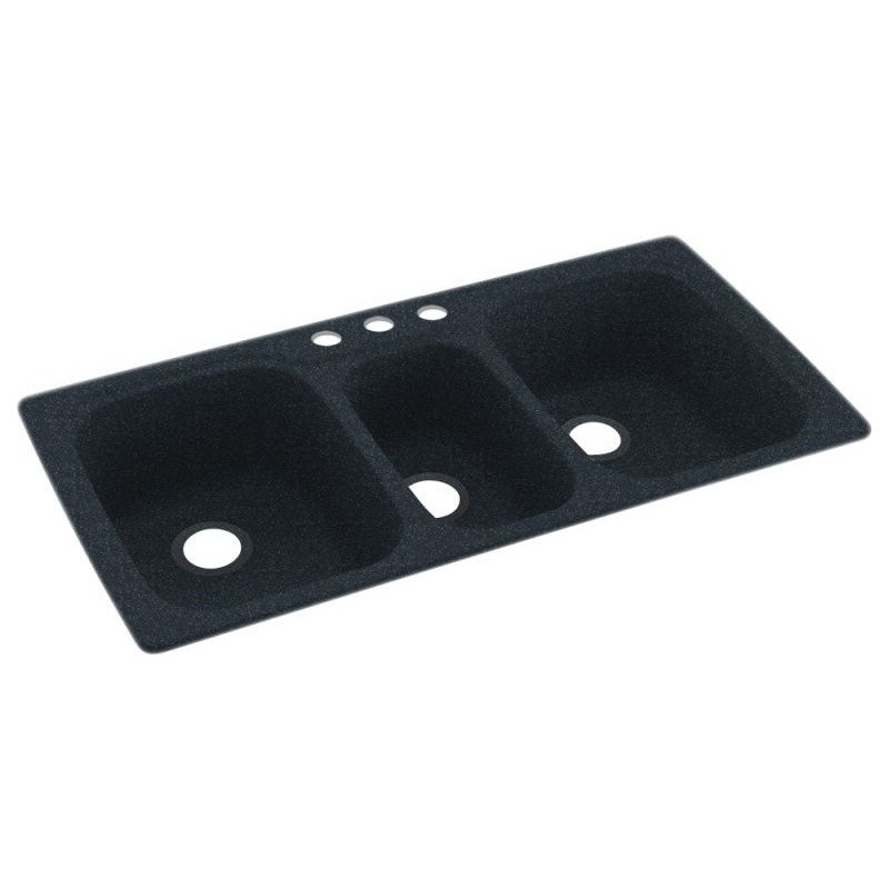 -Authentic solid surface is renewable and will not wear away -Pre-drilled with 3 faucet holes -Three bowls for maximum workspaceSwanstone withstands prolonged heat up to 450Product ID66461009Manufactured BySwanSold ByBath1Size/WeightW 22" / D 44" / H 9.5"