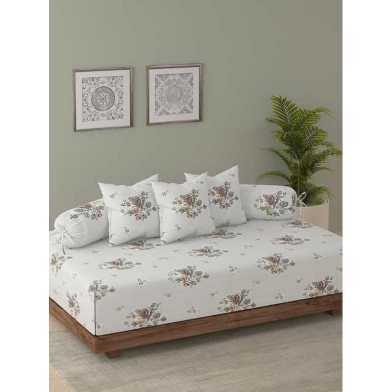 GR4670178279Swayam Ananda Beige Pure Cotton Floral Diwan Set