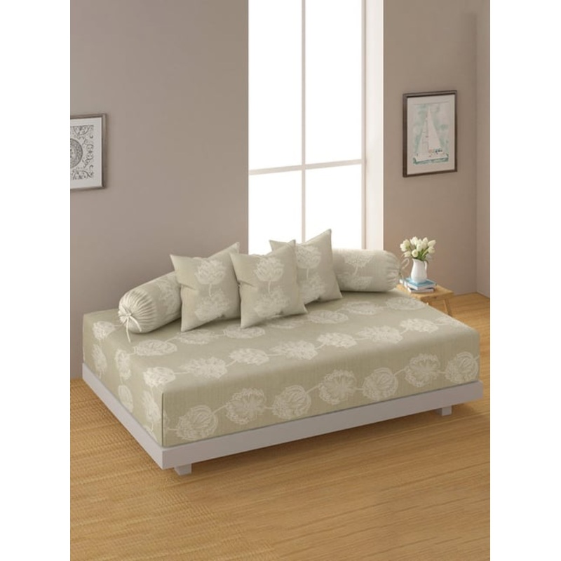 Swayam Pastel Vogue Floral Brown & White Cotton Single Diwan Set