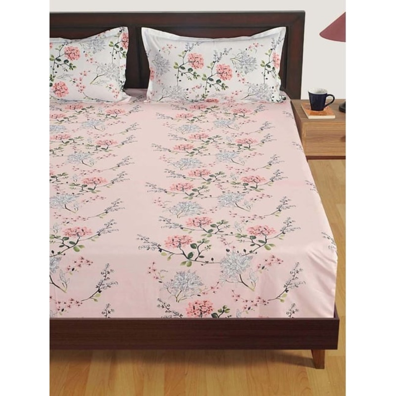 Enliven your home decor with this pink and grey bed linen set from the Caramel collection by Swayam. With a thread count of 180, this set comprises 1 double bed sheet, 1 comforter and 2 pillow covers. Tailored using 100 percent cotton, this set is soft against your skin and will ensure you a sound sleep. Further, the floral pattern enhances the appeal of the set.