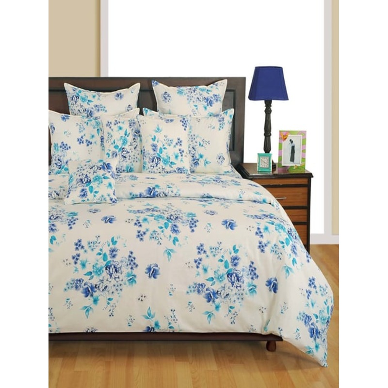 Groom your bedroom with this blue and cream set of 1 double AC comforter from the Veda collection Swayam. It has been crafted from cotton with 150 GMS polyfilling and has a thread count of 160 that makes it utterly soft and comfortable. Furthermore, the floral pattern speaks for itself. Equipped with an Anti Fungal Health layer, the comforter protects from allergies. While the additional protective layer prevents the fiber from oozing out, the special LIZA finish prevents the comforter from pilling and keeps it as good as new.