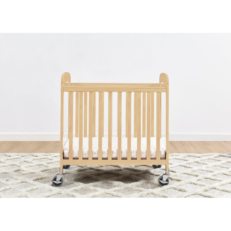 The Sweet Dreamer Crib features a reinforced metal frame mattress board support, natural wood slatted sides and clear, shatterproof acrylic headboards. The crib comes standard with a 2″ vinyl-covered mattress and four heavy-duty casters (two locking) making it evacuation-ready.