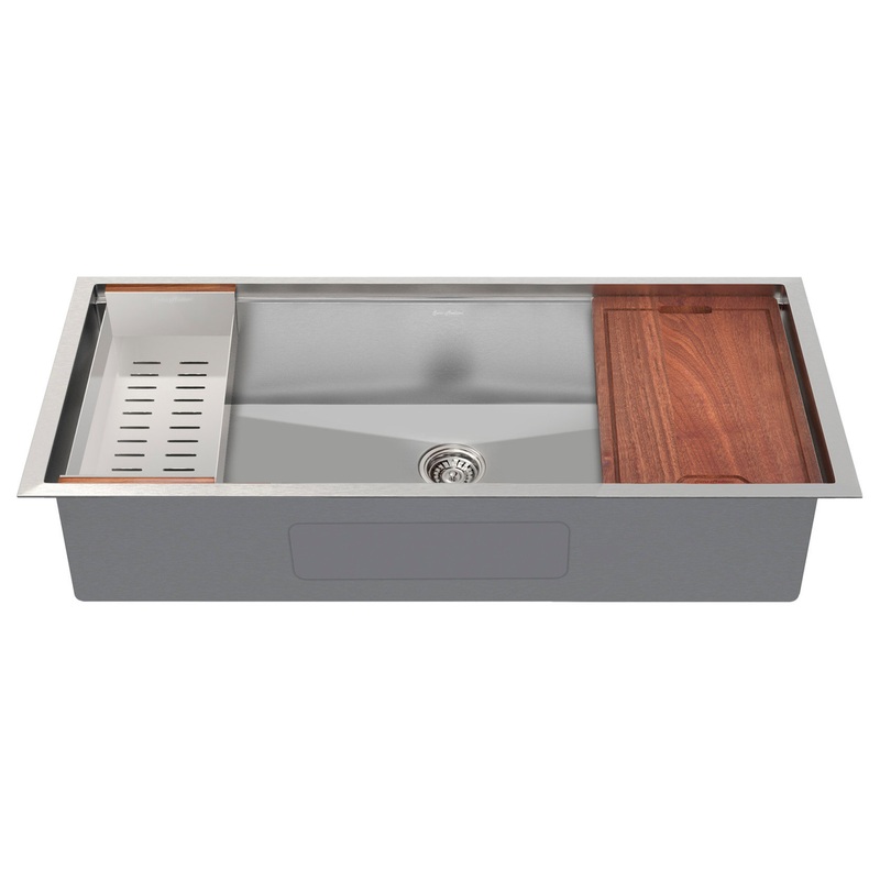This Rivage Workstation Sink is the ultimate modern addition to any kitchen setting. From meal prep to cleanup, this stylish undermount single basin set comes with a strainer, colander, and cutting board, making your kitchen a streamlined workspace. Crafte