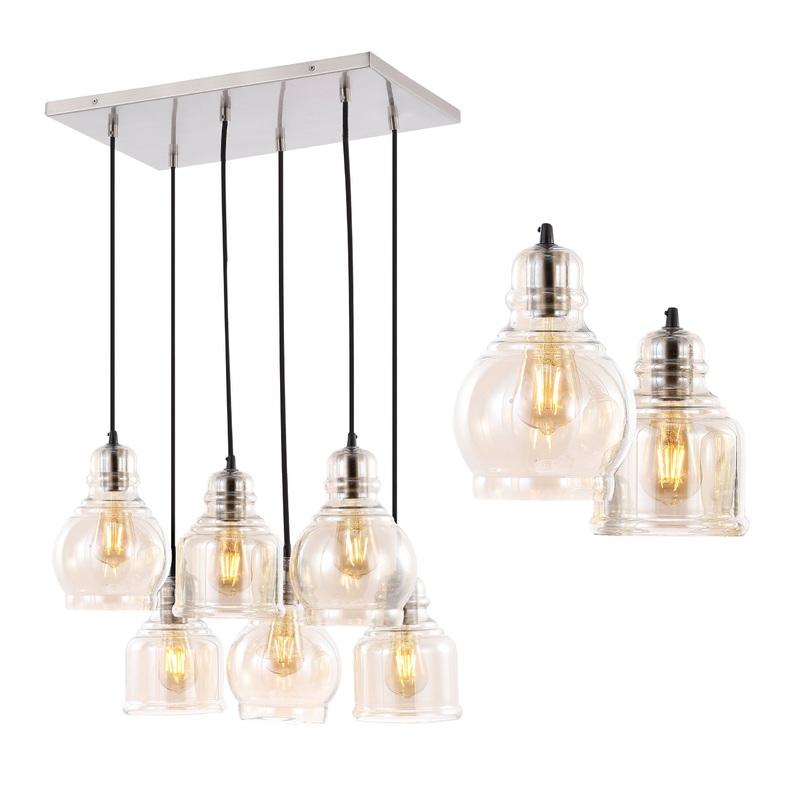 Farmhouse charm meets industrial chic in this unique linear light fixture. Six Edison-style LED bulbs provide plenty of warm light; a mixture of vintage-style glass shades adds artsy charm. This linear chandelier is a stylish lighting solution for your kitchen island or dining room.