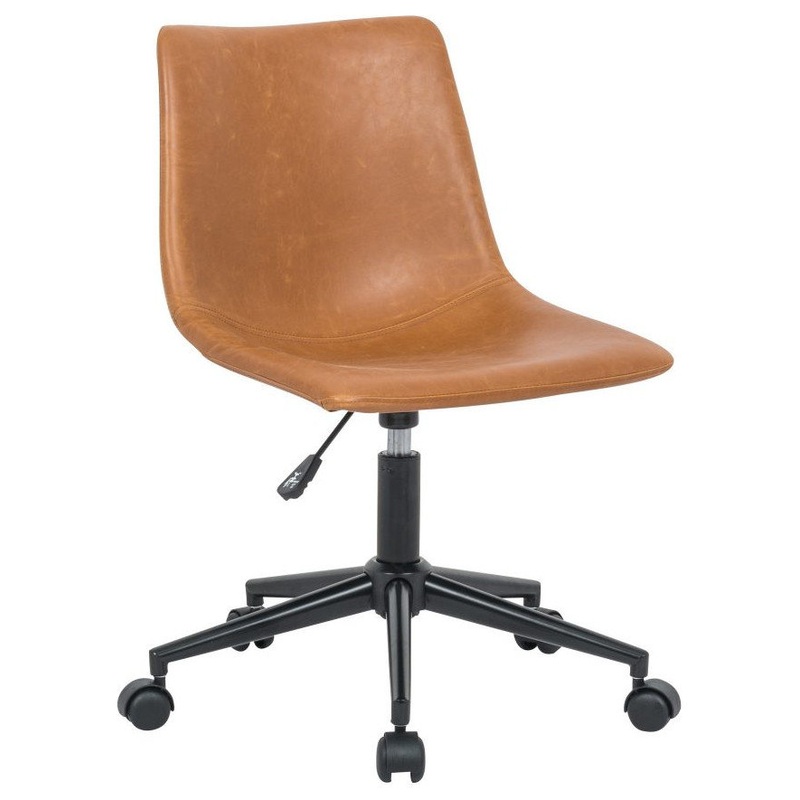 Sitting at a desk just got more stylish thanks to this office chair! Featuring a moulded-style design, it’s upholstered in a neutral faux leather for eclectic appeal and clean lines for a modern touch. It sits atop a metal base with five casters, allowing it to glide easily over carpets. A lever helps you adjust it to the perfect height, and of course, it swivels, making it effortless to move from task to task.