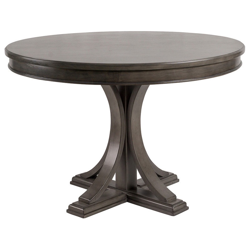 Gather round the Madison Park Signature Helena Round Dining Table. Featuring a grey wood finish with distressed edge detail, this round dining table adds a subtle elegance to your kitchen. Assembly is required. Product Features -Distressed round table in c