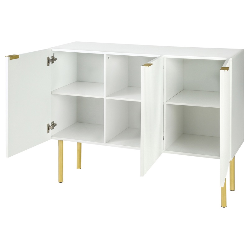 Flexible Storage Space: This cabinet is divided into three separate spaces, each equipped with a door for easy access. Inside each door, there is an adjustable shelf that can be set to three different heights, catering to your storage needs. The shelves can also be removed if desired, allowing you to accommodate items of various sizes.