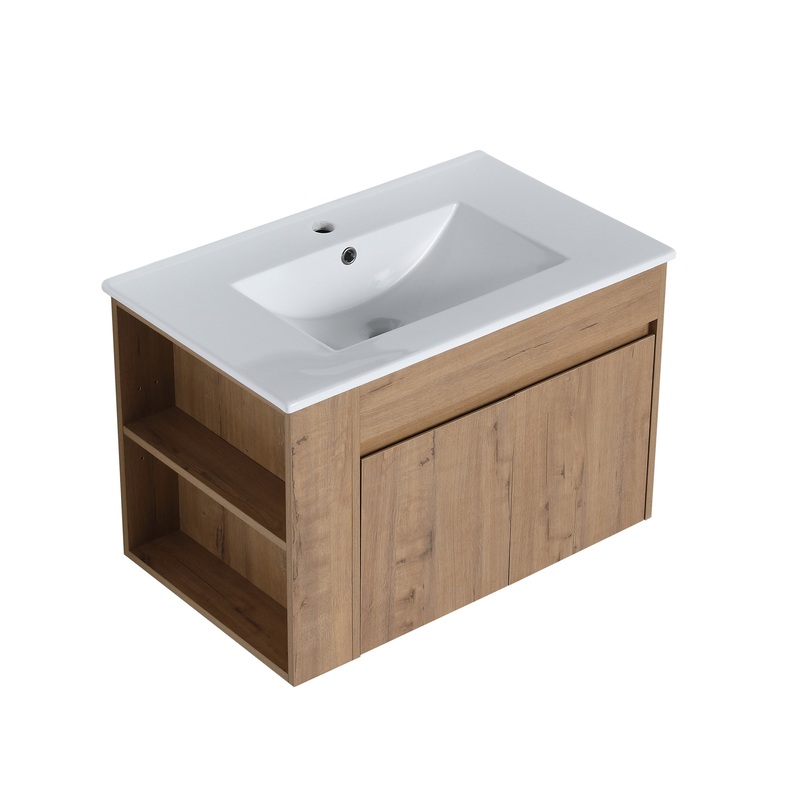 This bathroom cabinet features an adjustable open shelf that can be installed in the direction that best suits your needs. Depending on the instructions for installation, you can choose to have the open shelf on the left or right side of the cabinet, providing you with versatility and customization to accommodate your preferences and bathroom layout.