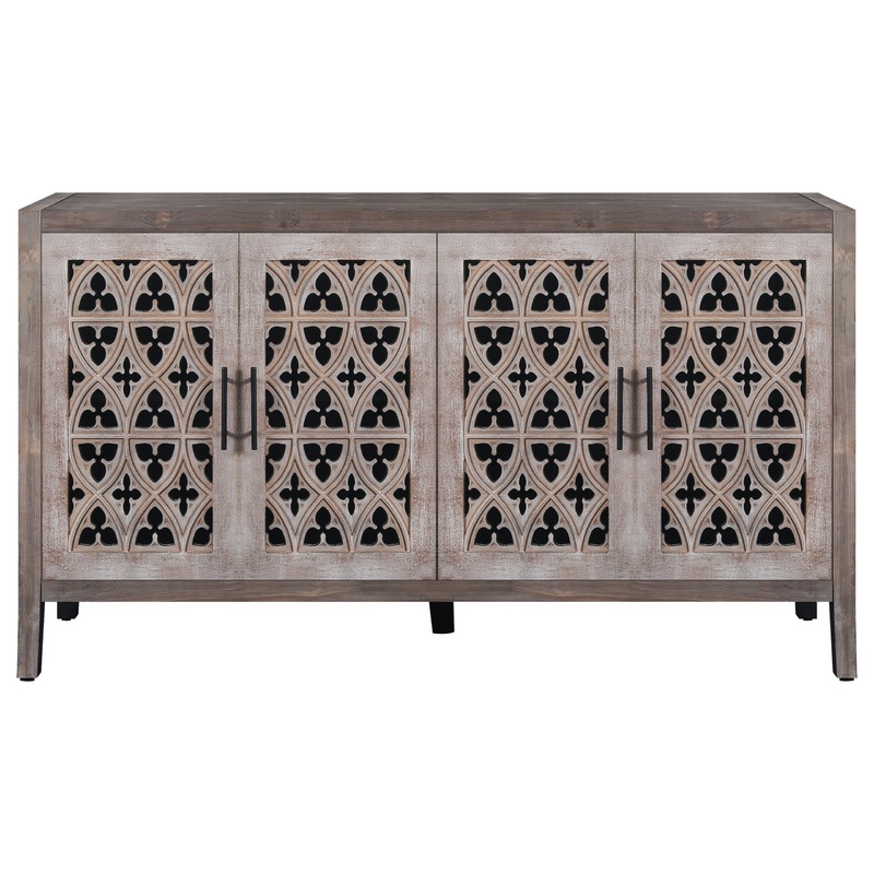 Hollow Four Door Antique Cabinet, American Country Style, Suitable for Living Room, TV Cabinet, Kitchen (Brown) This cabinet features a wooden skeleton door design with symmetrical floral pattern, making it very design and literary in appearance. Meanwhile