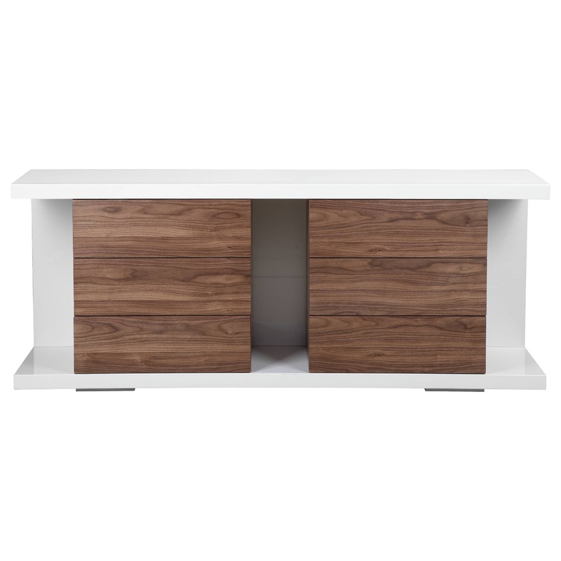 The Taylor Buffet is a multifunctional piece that can be used as either a dining buffet or bedroom dresser with 6 pull-out, soft closure drawers. A statement piece that will be the highlight of the room. Arrives fully assembled. Model # (MPN)BF-01 WHT/WALP
