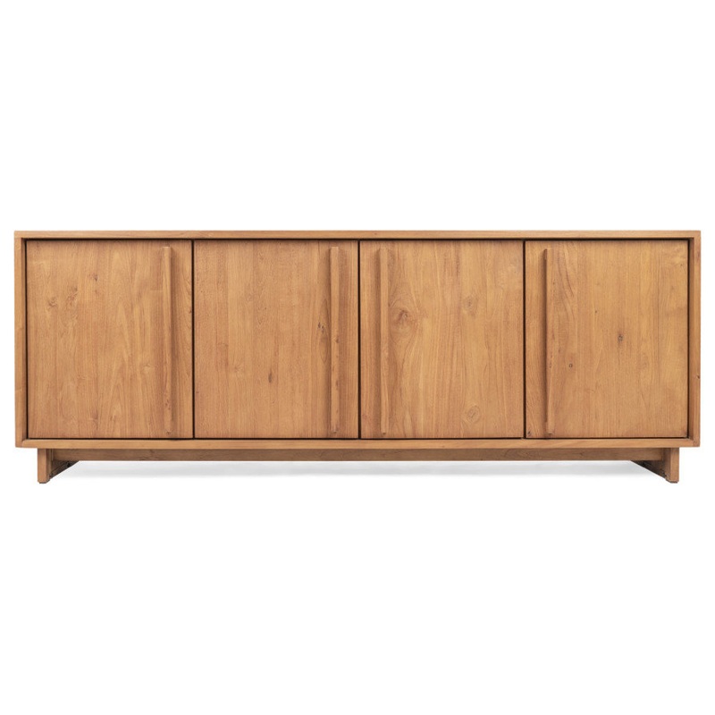 The Inline Dresser with two doors is a modern sideboard with a simple and clean design thats easy to match with any interior style. The dresser is handcrafted from reclaimed teak wood and features minimalistic designed reclaimed teakwood legs. Behind the two doors are two big, removable shelves for all your storage needs.