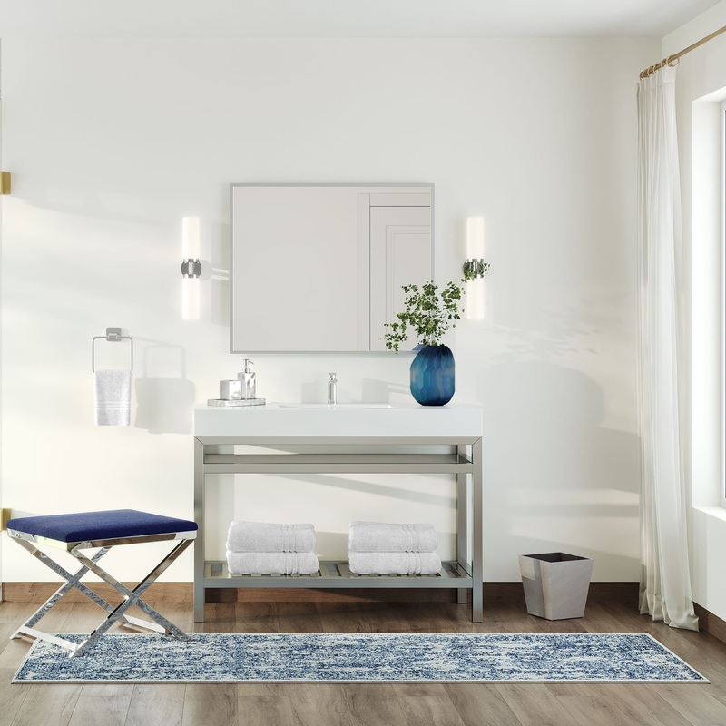 This elegant Console Vanity is compact in size and ideal for any small Bathroom or Powder Room. It’s made of durable 16 Gage 316L Stainless Steel and comes with a Reinforced Acrylic Composite Sink w/ Matching Rectangular Chrome Overflow cover.