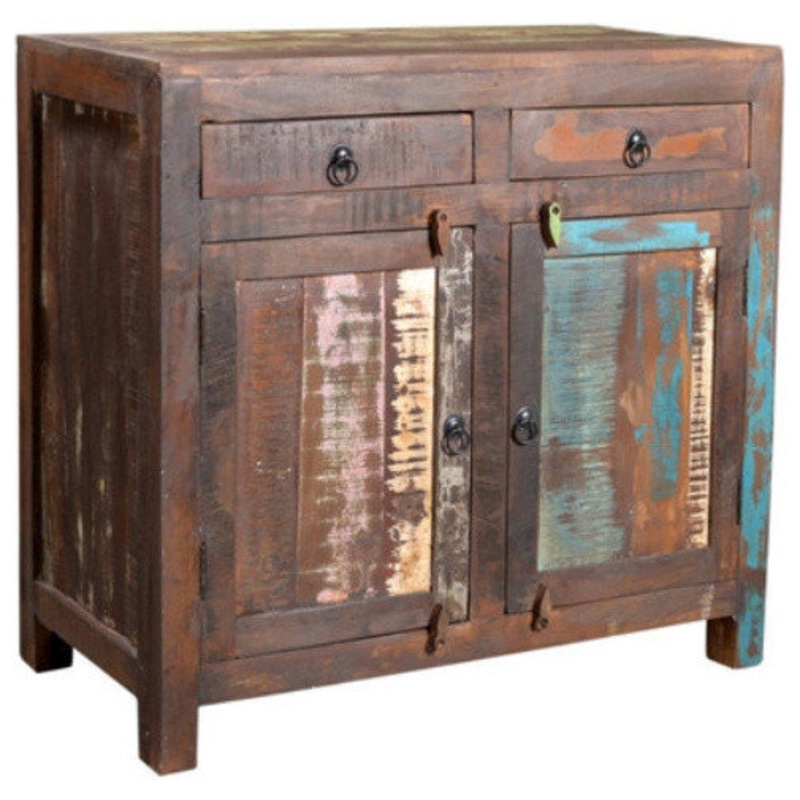 Rest easy, it's reclaimed. In a former life, the wood was used in Indian railway trestles. Today, it's prized for its natural imperfections and character; no two pieces are exactly alike.The salvaged materials used to create this side board have been prope