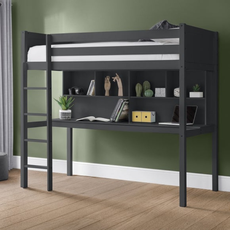 Robust construction crafted from Malaysian hardwood & MDFStunning panelled detailingIncludes a desk, shelves, and additional underneath storagese above the rest with the Titan Highsleeper. Crafted from Malaysian hardwood and MDF, this bed features stunning