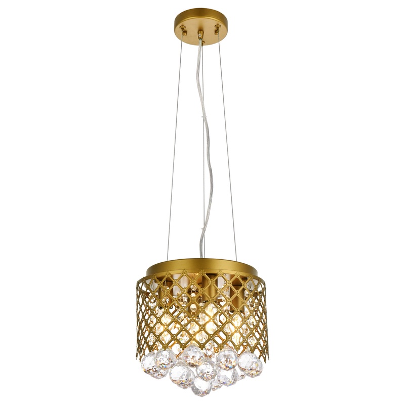 The elegant lattice metal curtain allows for the hanging crystals to play and dance around the illuminating light, with larger crystals at the base peeking out to say hello. Lights on or off, this gorgeous pendant will surely make quite a statement in your home!