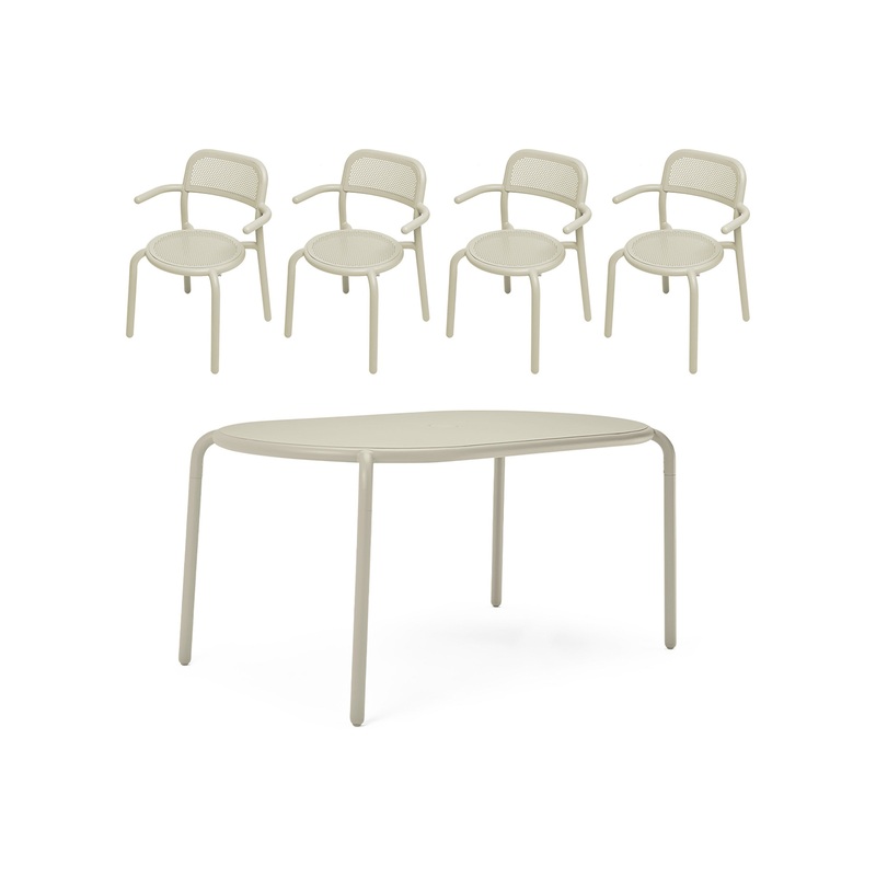 Upgrade your outdoor dining experience with the Ton Tavolo Table Set with Armchairs from Fatboy. Constructed of lightweight aluminum and coated to resist corrosion, this table is built for years of outdoor enjoyment. Say goodbye to wobbly glasses with its