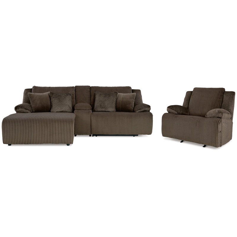 Experience unparalleled comfort with this seating package. Its a stylish and invitingly soft lookmade all the more appealing by cozy corduroy cushions that feel great and add a touch of texture. The rich chocolate brown upholstery effortlessly blends into your decor, making it a gorgeous addition to your home. So sit back and unwind in this spacious set, perfect for gatherings with friends and family.