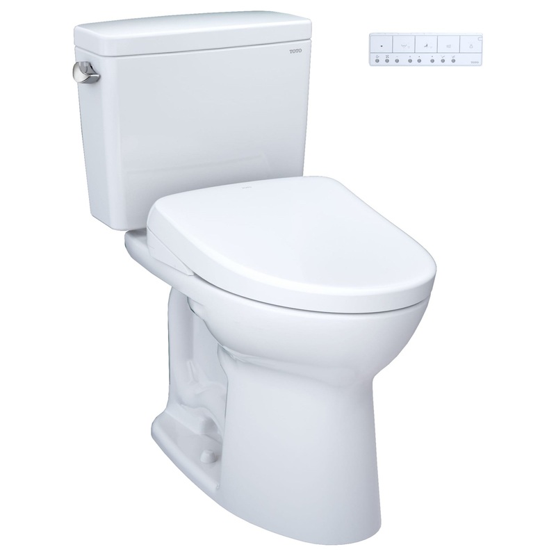 The TOTO Drake WASHLET+ Two-Piece Elongated 1.6 GPF TORNADO FLUSH Toilet with S7 Bidet Seat is designed to conceal the WASHLET power cord and water supply hose for a seamless installation. The WASHLET S7 features TOTO’s technologically advanced EWATER+ system that mists the wand and toilet bowl, reducing the need for harsh cleaning chemicals. PREMIST wets the surface of the toilet bowl, aiding in the removal of waste and resulting in a better clean. The TOTO WASHLET S7 is fully automated, including an illuminated remote control with 5 spray settings, heated seat, and instantaneous water heating. The Drake features TOTO’s TORNADO FLUSH, a rimless, hole-free design with dual-nozzles that creates a centrifugal washing action that assists in rinsing the bowl more efficiently. This version of the TOTO Drake includes CEFIONTECT, a layer of exceptionally smooth glaze that minimizes waste from sticking to the ceramic. CEFIONTECT, coupled with PREMIST and TORNADO FLUSH, assists to reduce the frequency of toilet cleanings, minimizing the usage of water, harsh chemicals, and time required for cleaning. This WASHLET+ toilet includes WASHLET, Drake bowl and tank set with hardware, and toilet bolt caps. Compatible with T40 WASHLET+ toilet bowl components only. Additional items needed for installation must be purchased separately: wax ring, toilet mounting bolts, and toilet water supply lines.