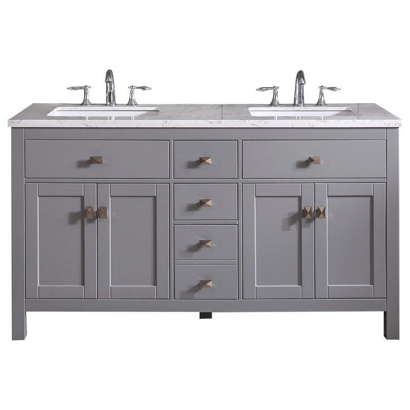 The Totti Memphis bathroom vanity with its unique and simple lines gives it an elegant yet transitional look. This double sink bathroom vanity comes with a Carrara style man-made stone countertop with beautiful gray veins. If you are looking for a bathroom