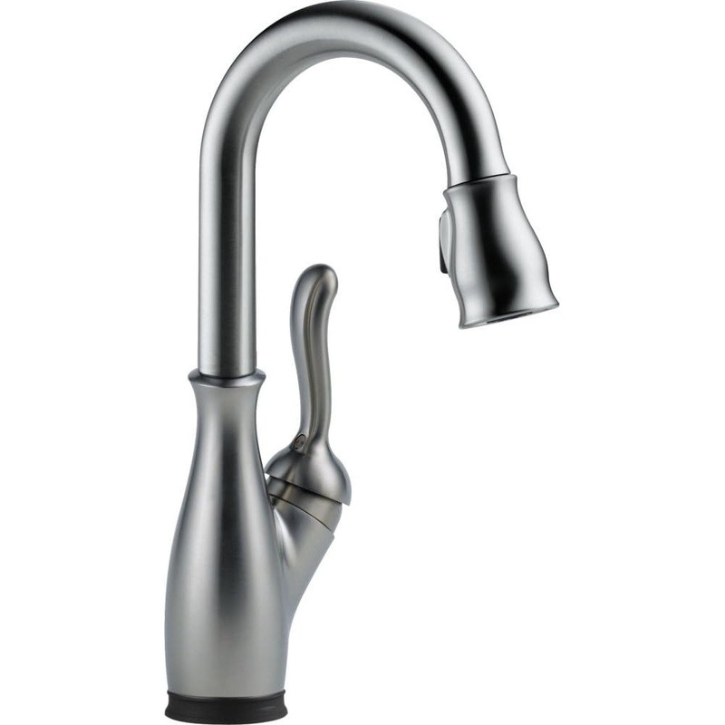 -TOUCH ON. TOUCH OFF. Messy hands. Touch anywhere on the kitchen spout with your wrist or forearm to start and stop the flow of water or use the single lever handle manually -MAGNETIC DOCKING. Docking uses a powerful magnet to snap your kitchen sprayer int