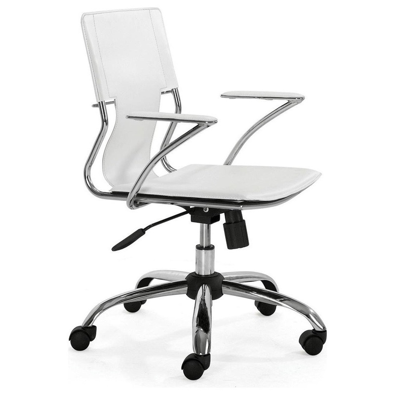 Add style and practicality to your office with the elegant Trafico Leatherette Office Chair This sleek designed office chair brings a luxurious feel and enhances the look of your working space. This office chair complements any bold and contemporary office decor. Trafico Leatherette Office Chair by Zuo features a convenient mechanism to adjust the height of the seat as per your needs. This office chair features a sleek sling-like back with leatherette upholstery seat provides a comfortable sitting. There are five casters on the base of this office chair for easy mobility. The Trafico Office Chair is available in a wide range of colors; you can choose anyone that complements your office decor.