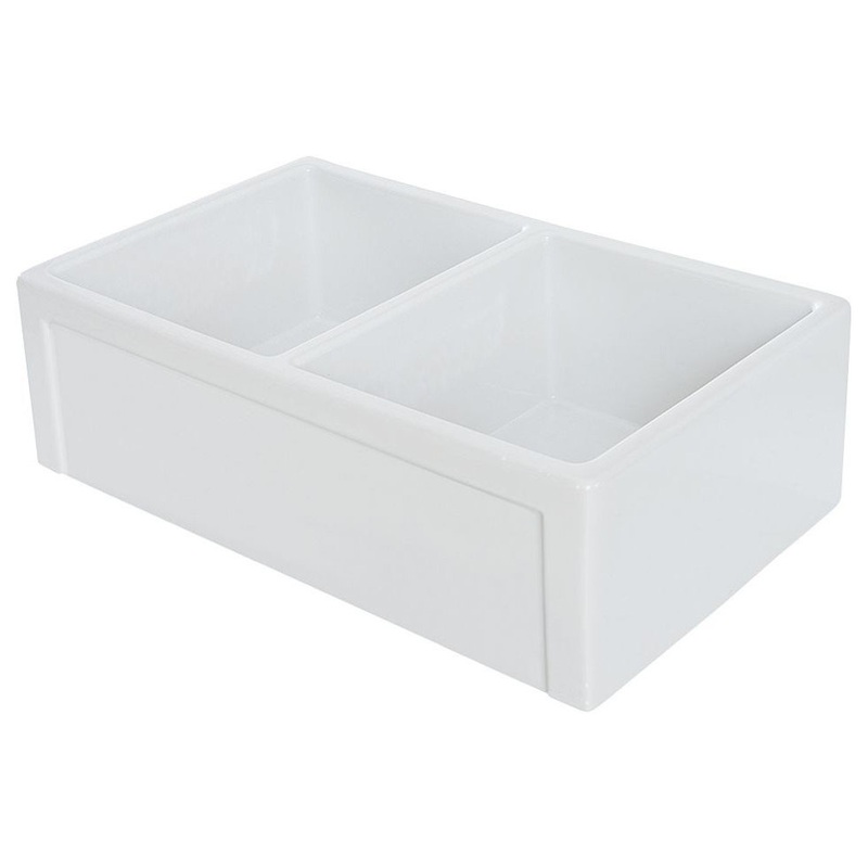 Transolid Aries Double Bowl Reversible Fireclay Farmhouse Kitchen Sink, White, 33-in L x 19.7-in W x 9.9-in H – Contemporary – Kitchen Sinks – by Bath1