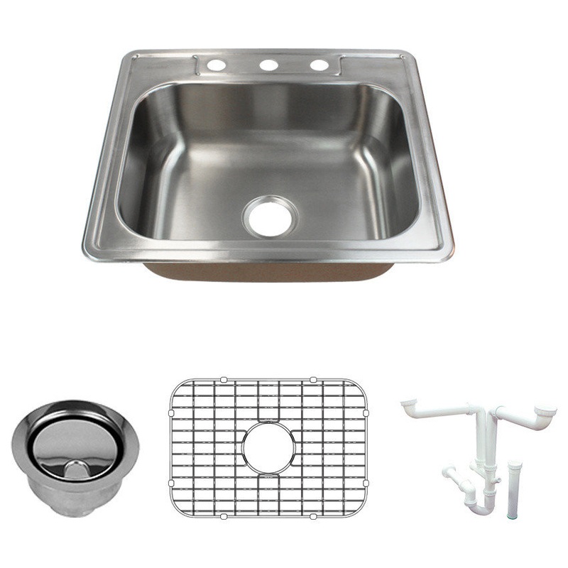 Transolid Classic Stainless Steel Single Bowl Kitchen Sink Kit, 22″x25″x8″ – Contemporary – Kitchen Sinks – by Bath1