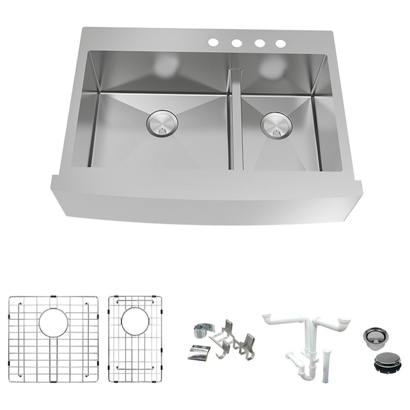 -QUIET AND PROTECTED: Thick 5 mm dampening pads and waterproof undercoating for sound and condensation insulationFREE ACCESSORIES: Includes universal sink drain kit with standard 1-1/2 inch pipe fittings, 5-piece magnetic accessory kit, set of stainless steel sink grids, and stainless covered flip-top sink and disposer strainers.